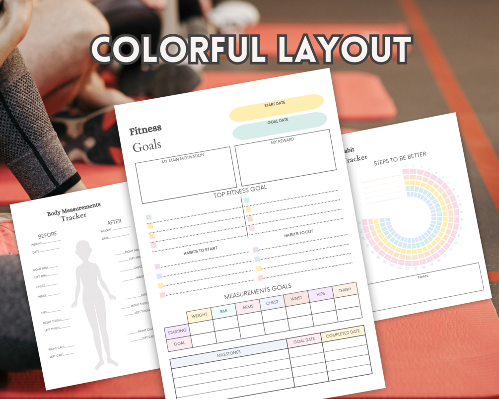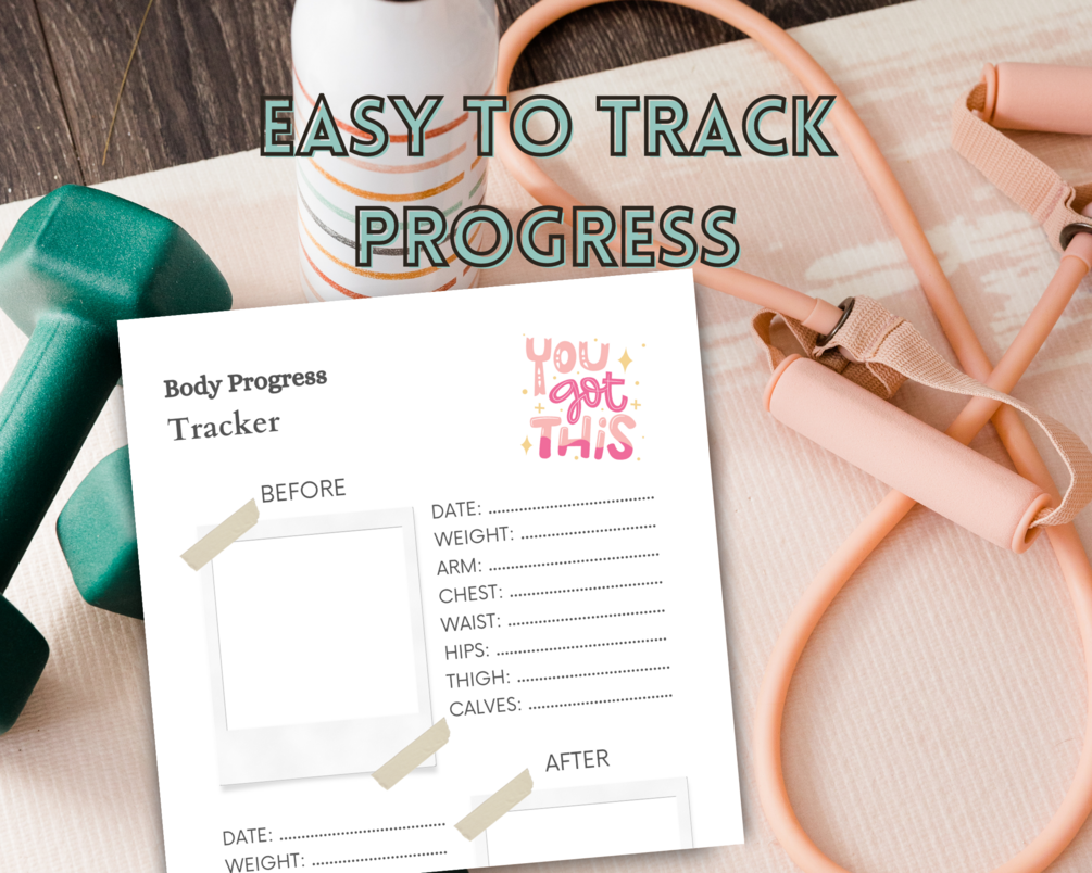 - Progress trackers and measurement charts for a tangible representation of your accomplishments.