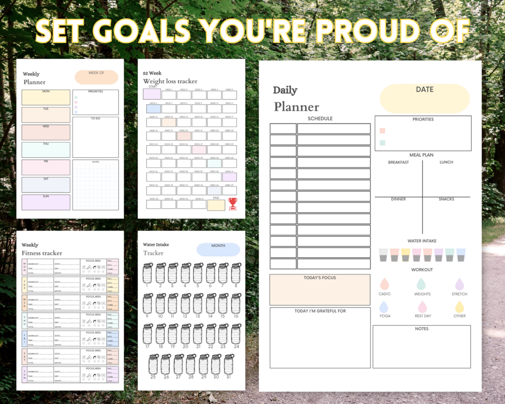 - Progress trackers and measurement charts for a tangible representation of your accomplishments.